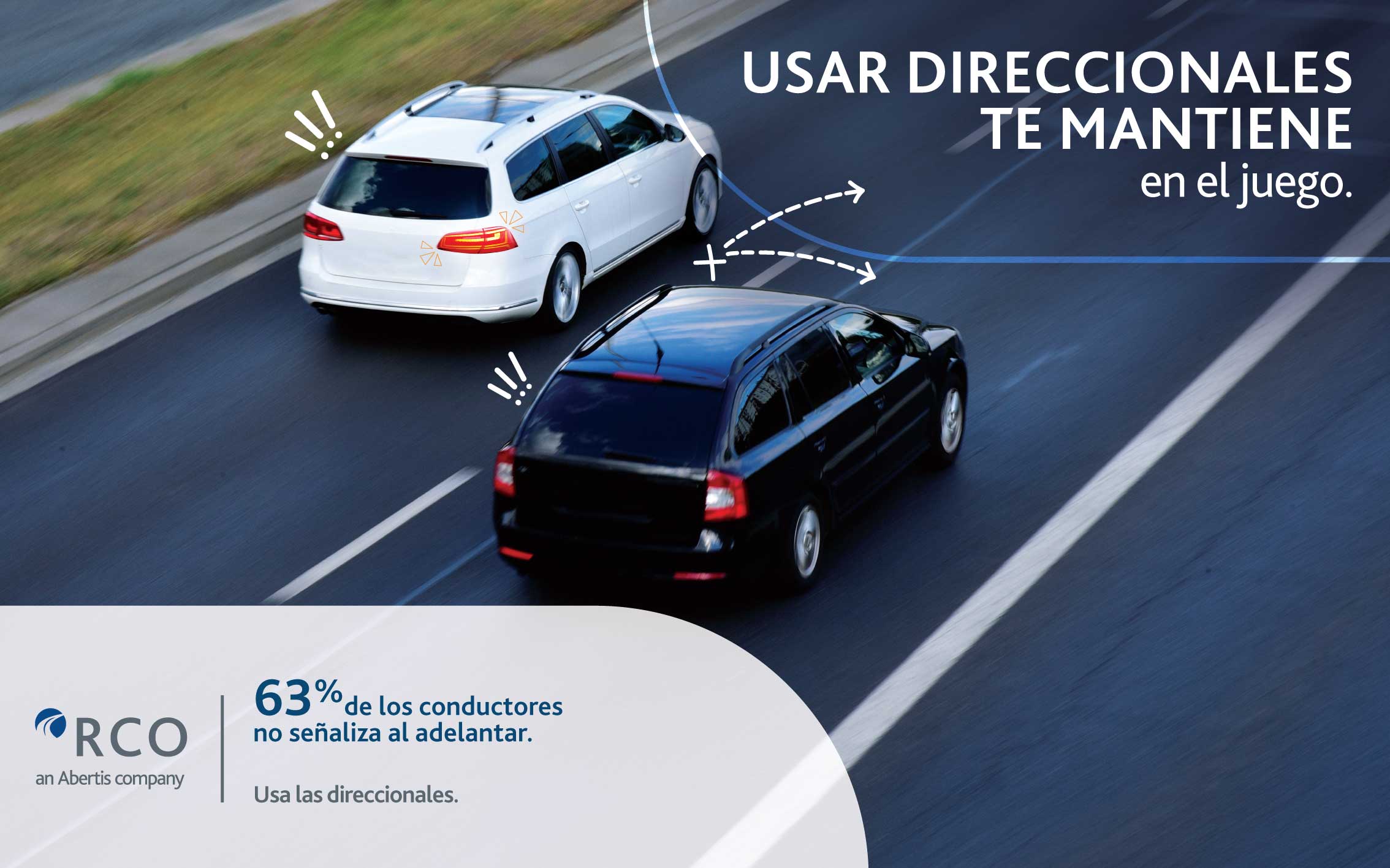 Usa las direccionales y frenos de manera anticipada para alertar a otros conductores.