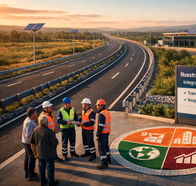 Nuestra estrategia de sostenibilidad integra la gestión social, ambiental y de gobernanza en cada etapa de nuestras operaciones, adoptamos las mejores prácticas internacionales para garantizar infraestructuras seguras, responsables y alineadas con las necesidades de las comunidades y el entorno. Hemos definido tres ejes sobre los que basamos nuestra estrategia: descarbonización, seguridad vial y cultura corporativa.